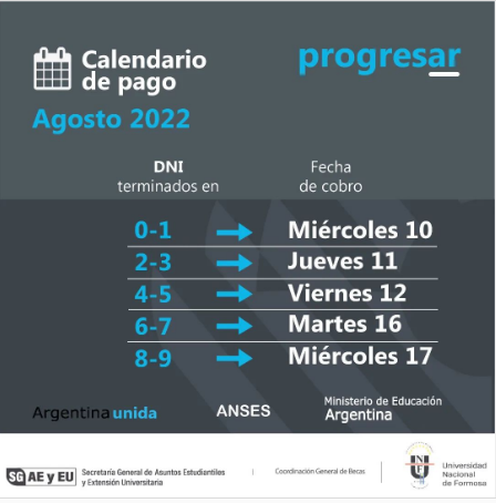 ¡Cronograma de pago correspondiente al mes de Agosto!