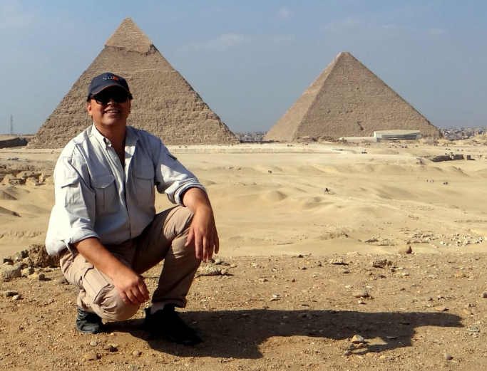 Es licenciado en Artes Visuales, curador y responsable del Museo Provincial de Ciencias Naturales de Villa Escolar, pero también un apasionado de la egiptología, trabajando hace más de diez años para la Universidad de Cambridge como parte del equipo arqueológico que estudia los vestigios de la antigua capital del Egipto faraónico, conocido como Amarna.