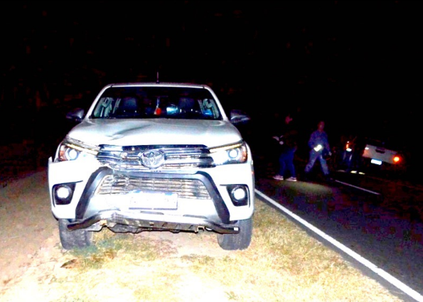 Los efectivos tomaron conocimiento que un hombre de 49 años circulaba por la mencionada ruta en sentido Sur-Norte, al mando de una camioneta Toyota Hilux y por razones que se tratan de establecer, colisionó contra una motocicleta marca Guerrero, modelo GC, de 150 cilindradas, la cual se encontraba al mando de un joven de 21 años, quien llevaba como acompañante a una mujer de 22 años de edad, que circulaban por la misma arteria y sentido.