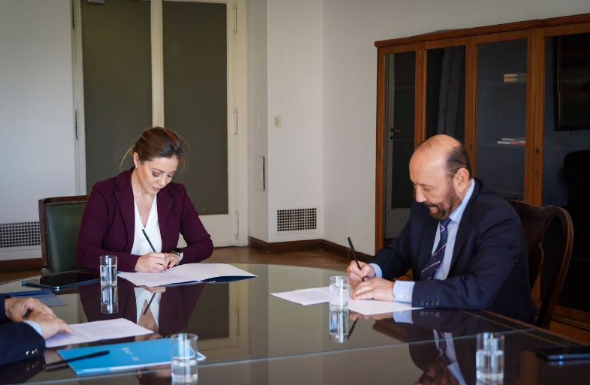 Este viernes, el gobernador de la provincia, Gildo Insfrán, junto a la secretaria de Energía de la Nación, Flavia Royón, y el director Ejecutivo de la Entidad Binacional Yacyretá (EBY), Fernando De Vido, firmó un acta compromiso para la ejecución del tendido de la línea de media tensión de 33 kilovoltio (KV), en el tramo entre la Subestación Transformadora de Ingeniero Juárez hasta la Estación Transformadora Santa Rita.