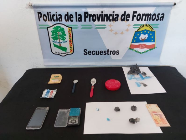 Se secuestraron varios gramos de cocaína, distribuidos en cinco envoltorios aptos para la confección de 39 dosis umbrales, balanza de precisión con restos de cocaína.