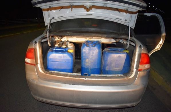 Los efectivos procedieron a la demora de un hombre de 29 años al mando de un vehículo Suzuki Fan, quien trasladaba combustible en ocho bidones de 25 litros cada uno, lo que totalizó 200 litros.