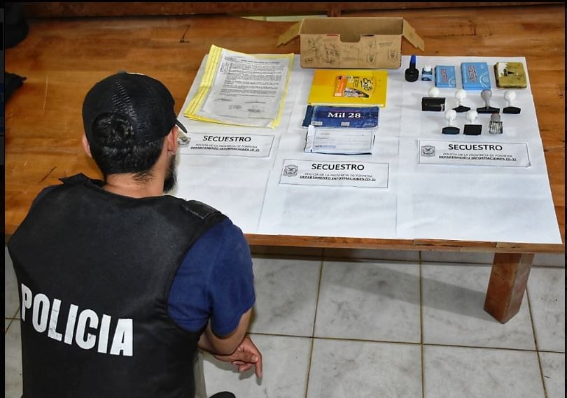 Una vez con la orden concedida se constituyeron hasta un alquiler ubicado en el Barrio República Argentina, lugar donde hallaron más elementos vinculados a la causa investigada, como así también se hallaron documentaciones y sellos de organismos públicos y privados falsificados, por lo que previa documentación de la Policía Científica procedieron al secuestro de lo mencionado y dieron inicio a otra causa judicial por el delito de “Falsificación de Sellos y Documentos” con intervención de la Justicia, cuya causa también fue notificada al detenido.