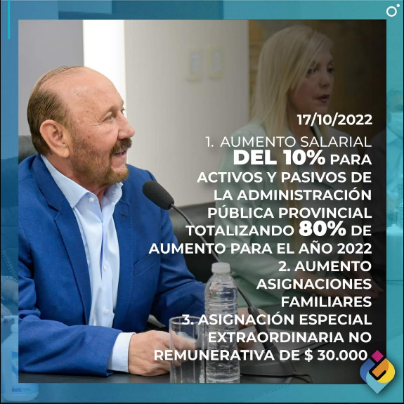 Con el objeto de sostener y mejorar el poder adquisitivo de los haberes de los Recursos Humanos integrantes de la Administración Pública Provincial, he dispuesto para el último bimestre del año en curso, tres medidas complementarias de Política Salarial a las ya establecidas durante el presente año.