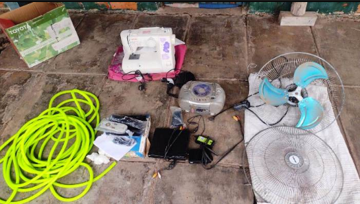 Seguidamente, se comunicaron vía telefónica con la propietaria del inmueble quien acudió rápidamente al lugar, constatando la faltante de varios bienes de su propiedad, los cuales fueron hallados por los efectivos en un sector de pastizal tratándose de un ventilador, una manguera, una máquina de coser, un DVD, un machete, un decodificador y un equipo de música, bienes que fueron reconocidos por la mujer como de su propiedad.