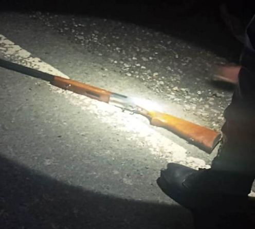 Una vez demorado los mismos, el acompañante un sujeto de 20 años de edad, trasportaba en una bolsa arpillera un arma de fuego, Escopeta, calibre N° 12 GA, 76 milímetro, con cinco cartuchos calibre 12mm, sin contar con documentaciones de propiedad, tampoco de portación y tenencia, como así también tres armas blancas, una chaira, dos vainas de cuero.