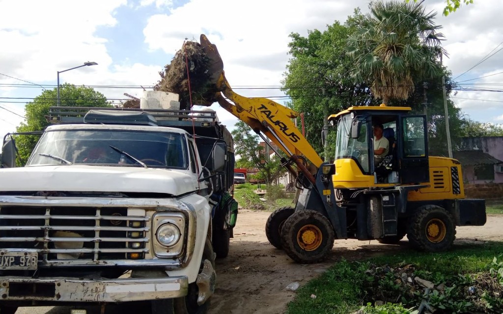 De esta manera, cuadrillas comunales y cooperativistas, disponiendo de camiones y máquinas, procedieron a la recolección de grandes volúmenes de residuos convencionales y no convencionales, como ramas, escombros y chatarras, en los siguientes conglomerados: Lote 110, Lote 111, Lisbel Rivira, Lote 4, San Francisco, San Miguel, Independencia, Don Bosco y San Martín.