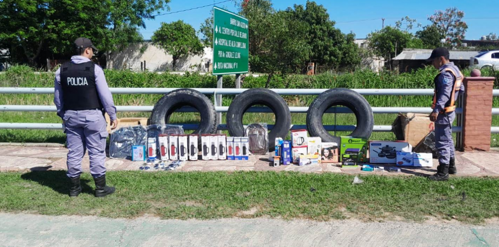 En un operativo de control sobre avenida Ribereña y Santa Bárbara, efectivos de la Policía detuvieron la marcha de una camioneta al mando de un hombre de 35 años quien transportaba mercaderías sin aval aduanero, por lo que labraron acta de infracción y secuestraron lo que transportaba.