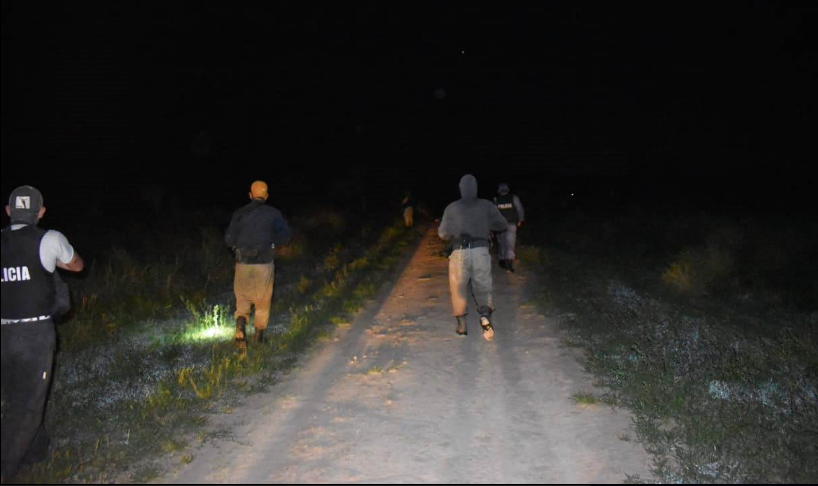 Alrededor de las 22.30 horas, los avezados integrantes de UEAR escucharon ruidos y movimientos sospechosos en el monte, encontrándose con un grupo de personas, sin poder determinar la cantidad debido a la oscuridad reinante en la zona.