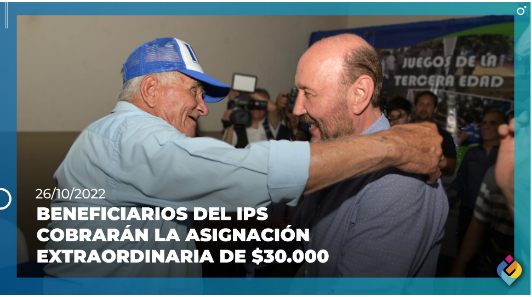 En sus redes sociales, el primer mandatario señaló: "Anunciamos el pago de la Asignación Extraordinaria de $ 30.000 para los beneficiarios del Instituto de Pensiones Sociales (IPS).