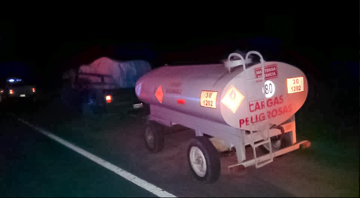 Durante un control de rutina, la Policía detecto que un hombre trasportaba combustible en una camioneta dos tanques con jaula y una cisterna llenos de combustible, transgrediendo la legislación vigente.