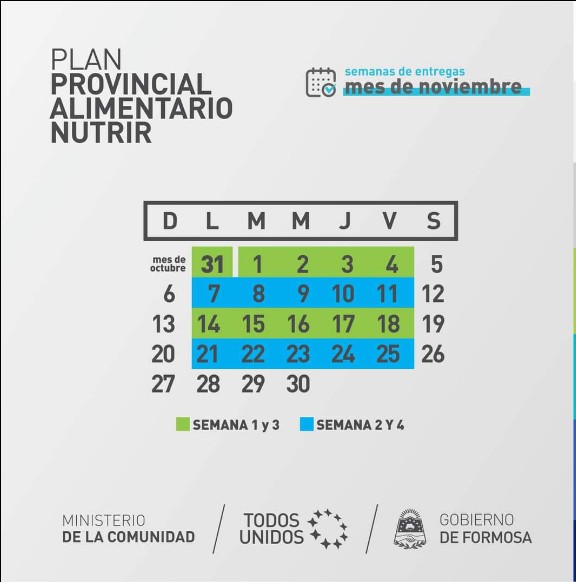 La coordinadora ejecutiva del Plan Provincial Alimentario Nutrir, Anahí Santander, informó que este lunes 31 de octubre se da inicio a la primera semana de entrega de bolsones, correspondientes al mes de noviembre.