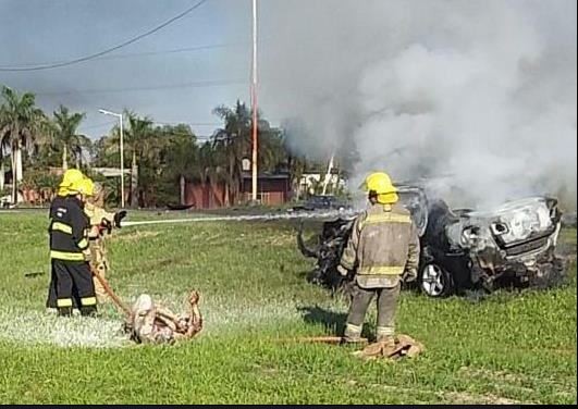 En el lugar se constata el incendio de un vehículo marca Fiat Siena, el cual se halla ubicado en la banquina de la Ruta citada, como así una persona de sexo masculino con quemaduras en un gran porcentaje de su humanidad, quien en esos momentos es auxiliado por ocasionales transeúntes, acude también Personal de Bomberos y SIPEC, estos últimos trasladando al masculino hasta el Hospital local para mejor atención médica.