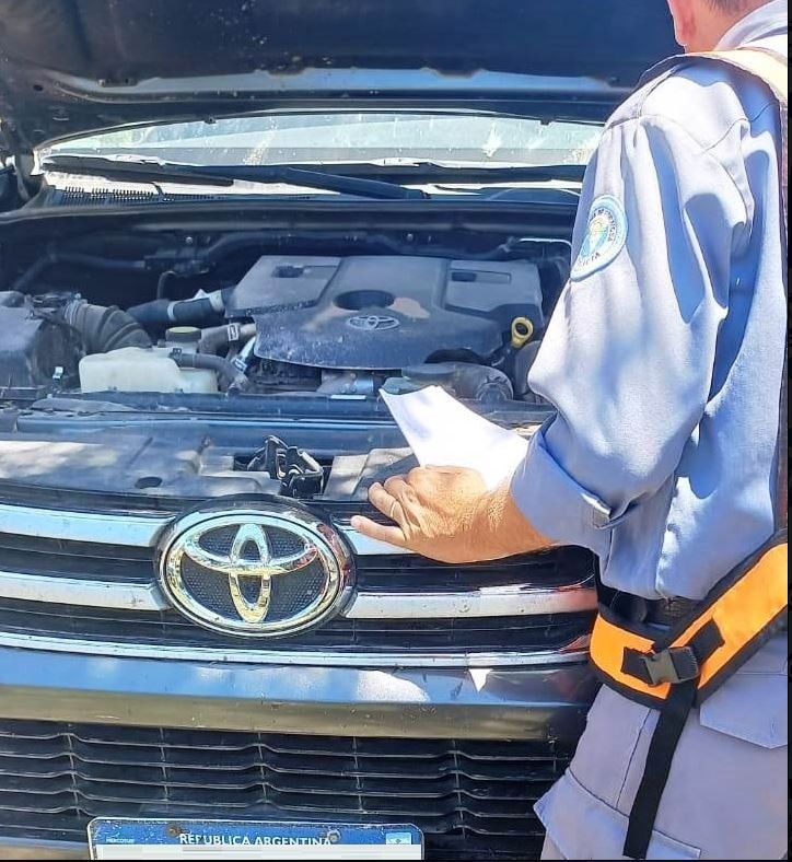 Durante un control de rutina, la policía detectó que una camioneta Toyota Hilux tenía los grabados no originales y otras adulteraciones, sumado a un pedido de secuestro de la provincia de Buenos Aires, lo que derivó en el secuestro del rodado y la detención del conductor.