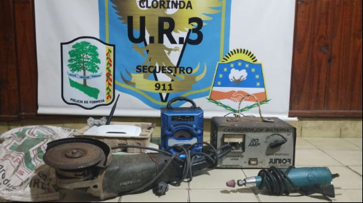 Alrededor de las 1 de la madrugada de este miércoles, integrantes de la Brigada del Comando Radioeléctrico Policial recorrían por calle Italia y Sarmiento, cuando demoraron a un hombre de 30 años que trasladaba una bolsa, con un Router Tp-link, un cargador de Batería, un equipo de sonido, una amoladora con un disco y una sierra, elementos que no pudo justificar como de su propiedad.