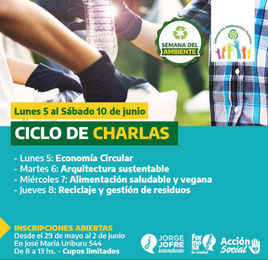 La Secretaría de Acción Social de la Municipalidad capitalina junto a Voluntarios Ambientales Formoseños están preparando la semana del ambiente que contará del lunes 5 al sábado 10 de junio con interesantes charlas, intercambio de libros y semillas, Feria del Buen Ambiente y concurso de arte para los más chicos de la familia.