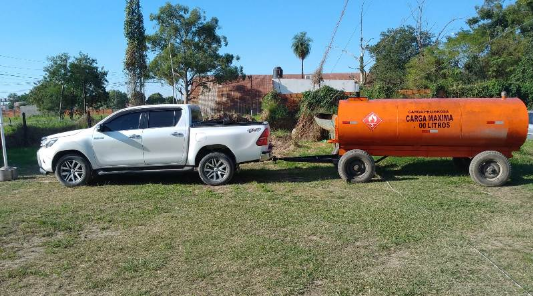 En resguardo de la seguridad pública y ante el peligro que representa el transporte de sustancias en medios no adecuados, se procedió al secuestro de una camioneta Toyota Hilux en la calle y de la cisterna que tenía 4.500 litros de gasoil. El conductor fue demorado y trasladado a sede policial a fin de ser notificado de su situación legal y continuando posteriormente en libertad por orden del juez de feria en turno.