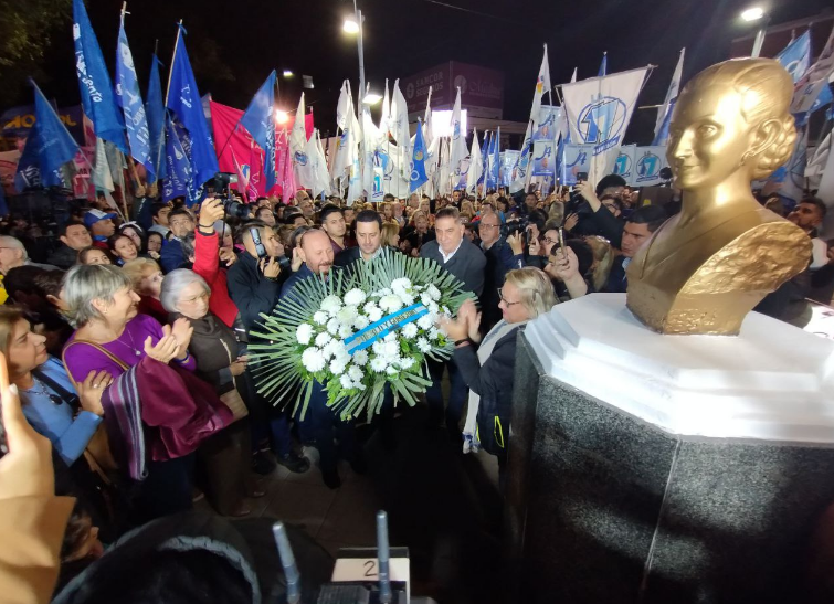 En ese contexto, el primer mandatario, junto al Vicegobernador, el intendente de la Ciudad, el Partido Justicialista, diputados y diputados justicialistas, y militantes, depositaron ofrendas florales ante el busto.