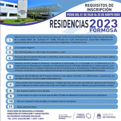 Asimismo, los interesados podrán solicitar más información a la Dirección de Formación y Capacitación de Recursos Humanos en Salud, del Ministerio de Desarrollo Humano, al teléfono: 0370-4426235 (Interno 1057/1059).