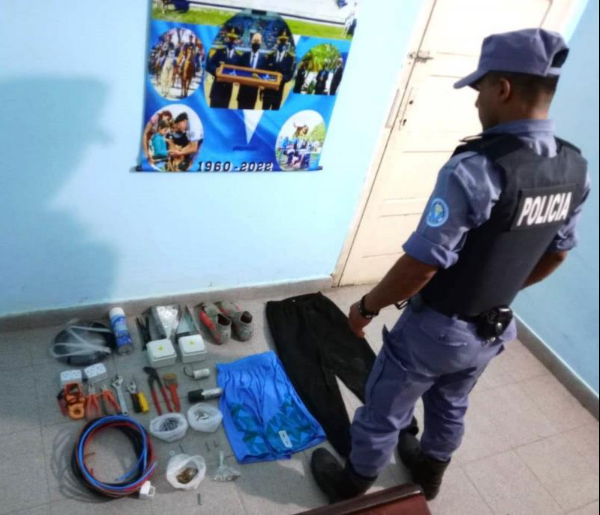 Al realizar una recorrida por una zona de baldíos, los efectivos hallaron escondidos entre las malezas herramientas varias, una pinza amperimétrica digital, 11 precintos negros, fichas terminales, dos tomacorrientes exteriores dobles, 15 ángulos de chapas tipo zing, tornillos y tacos, arandelas varias, dos capacitores, dos cajas de PVC cuadradas, dos rollos de cable taller de 2,5 milímetros, un alargue con enchufe macho de cinco metros y prendas de vestir.