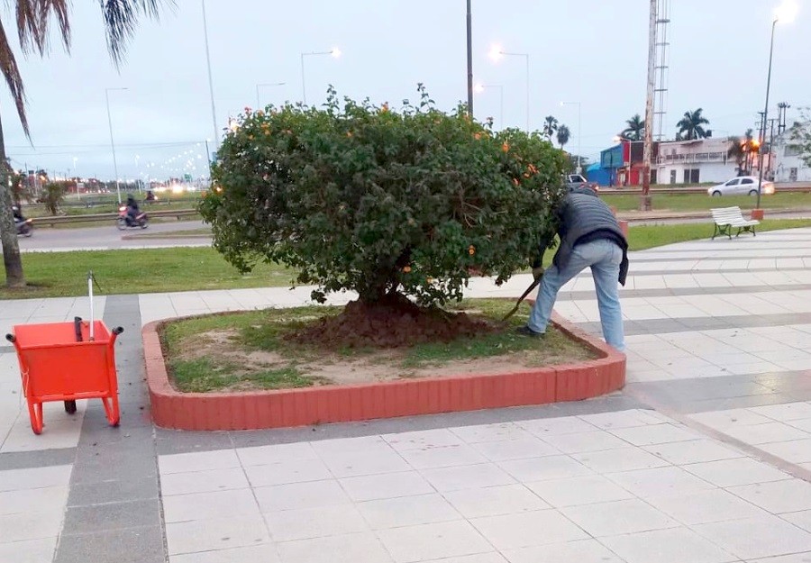 La puesta a punto de espacios públicos con tareas de embellecimiento, el cuidado de la flora, el suelo y el arbolado urbano, es una acción que ejecuta la comuna de manera constante a través de su Dirección de Parques y Espacios Verdes.