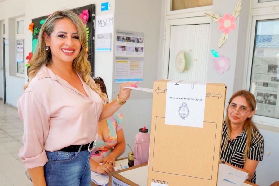 La concejal justicialista María del Carmen Argañaráz, voto este domingo en horas de la mañana en la Escuela 396 Virgen de Itatí de Formosa Capital.
