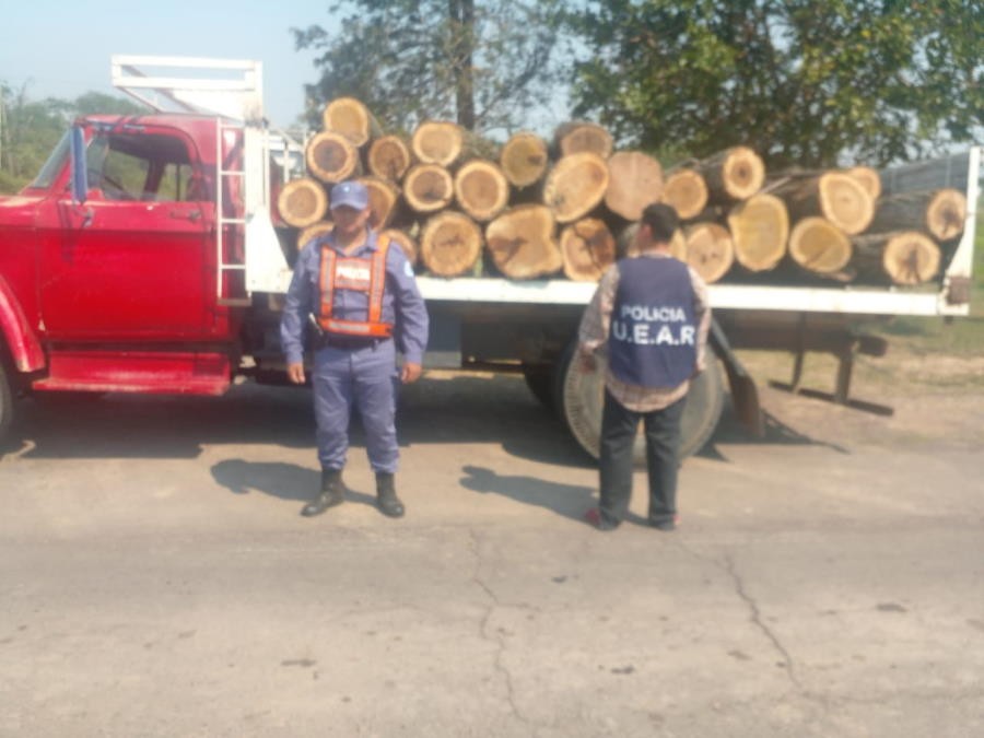 Al verificar la carga constataron que trasladaba la cantidad de 28 rollos de maderas, de los cuales 23 eran de urunday, uno de algarrobo y cuatro de Lapachos.