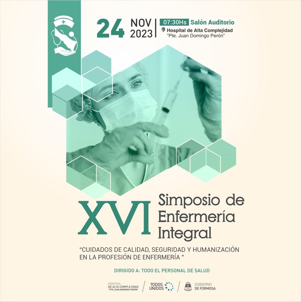 El próximo 24 de noviembre se realizará en el salón auditorio del Hospital de Alta Complejidad “Pte. Juan Domingo Perón”, el XVI Simposio de Enfermería Integral, bajo el lema: “Cuidados de calidad, seguridad y humanización en la profesión de enfermería”.