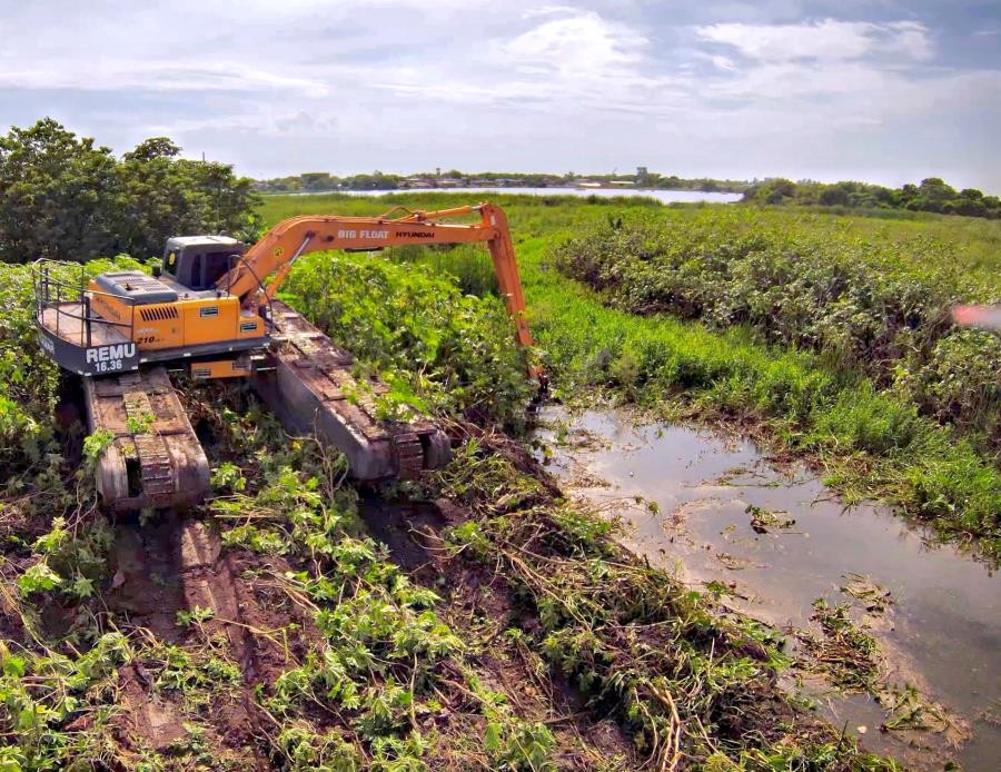 “En el lugar se realizó un trabajo integral con excavadora anfibia y se inició la limpieza de la cuenca de bombeo de esta estación con una excavadora convencional de brazo largo”, especificó más tarde.